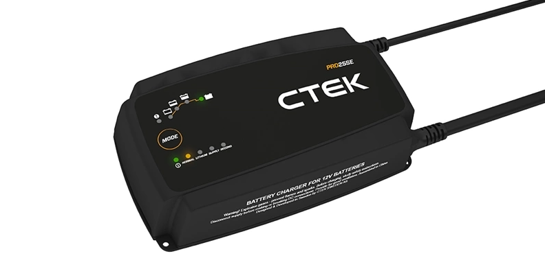CTEK PRO 25SE är en riktigt bra proffsladdare för 12V. En högeffektiv 25A billaddare som ger säker och snabb uppladdning med avancerad teknik med hög säkerhet. Idealisk för verkstäder, till husvagnar, husbilar och båtar. PRO 25SE är även en väldigt populär laddare till många demobilar med större billjudsbyggen! PRO 25SE-modellen har 6meter kabel på 12Volt sidan och är en "verkstads-variant". SÅ man kan ladda bilen även om den står på tex en lyft. (Annars är det samma laddare som PRO 25S)