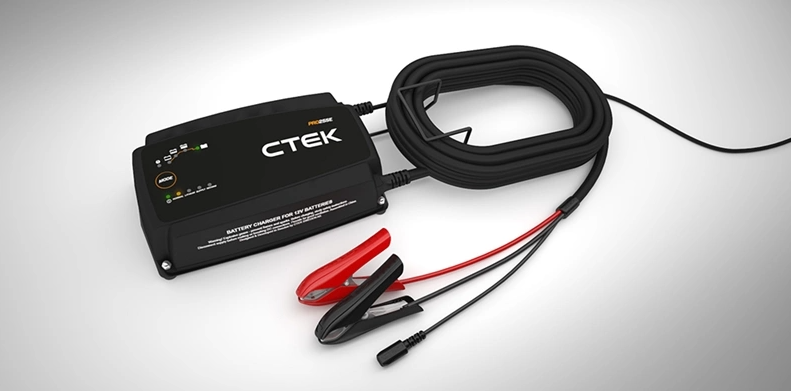Helautomatisk billaddare som ger 25A till 12V-batterier på mellan 40 och 500Ah. Laddaren är IP 44-klassad (användning utomhus), skyddar fordonselektroniken, skapar inga gnistor och är polaritetsskyddad och kortslutningssäker