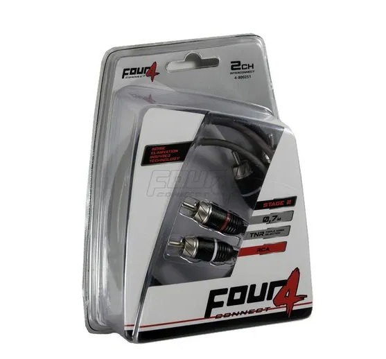 4Connect STAGE2 RCA-cables are carefully designed to get best possible results. These cables have thicker than usual conductors that are made of tinned OFC ( T-OFC ). Triple shielded Twisted Pair structure eliminates unwanted noise. Another noise eliminating factor is an extra wire that is inside all cables. Conductors are also covered with foil to prevent inductive noises. Conductors are isolated with materials that are used in high voltage cables. This structure gives unbeliavable good noise supression that is especially important in car environment. Connectors are Rhodium-plated Bite Hold Molded Connectors ( BHMC ) and every connector is tested in factory that they have excellent grip. Connector housings are made of HDPE-plastic that has high insulation factor. Housings have opposite cone structure that works as a strain relief to cable. Outer extra wire can be used as a remote lead or noise supressing ground lead.