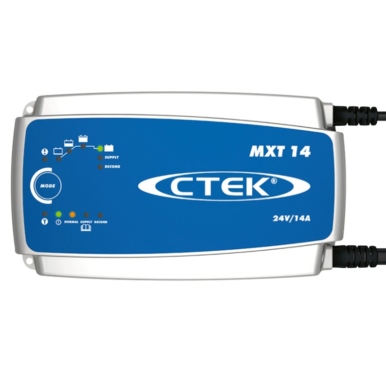 CTEK MXT14 har alla egenskaper och funktioner som gör att du kan lösa många olika batterirelaterade problem. Den har funktioner som undersöker och visar om batteriet kan laddas och bibehålla laddning, en speciell rekonditioneringsfunktion som återställer skiktade och djupt urladdade batterier, unik underhållsladdning samt en temperaturgivare för optimerad laddning oavsett väderförhållandena. Laddaren har också en matningsfunktion så att batteriet kan kopplas bort från fordonet utan att viktiga inställningar går förlorade.