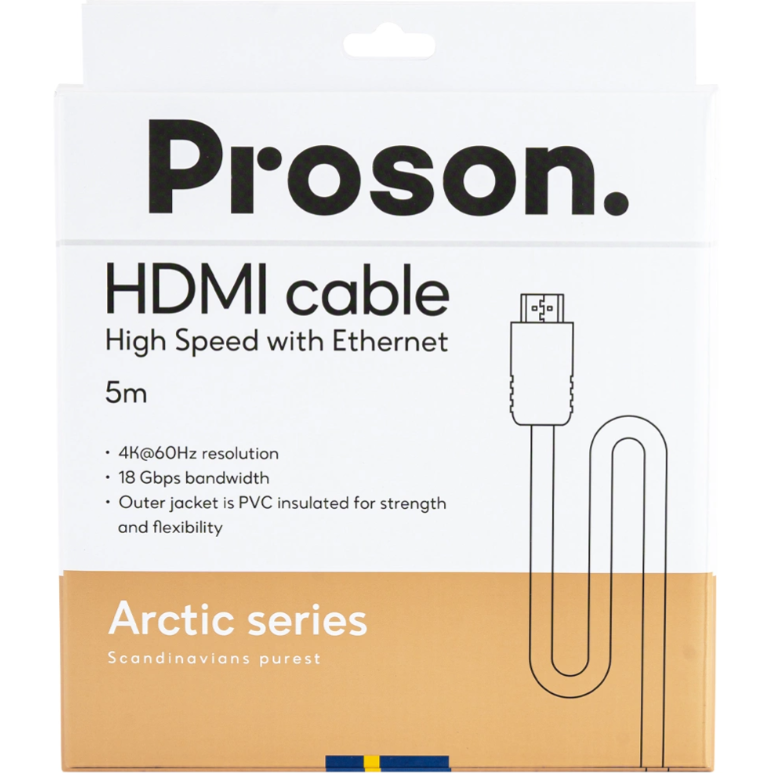 Proson Arctic är en snygg HDMI-kabel med ett snyggt skyddande flätat yttre och har stöd för 4K-video! En riktig kvalitetskabel till ett överkomligt pris från svenska Proson.