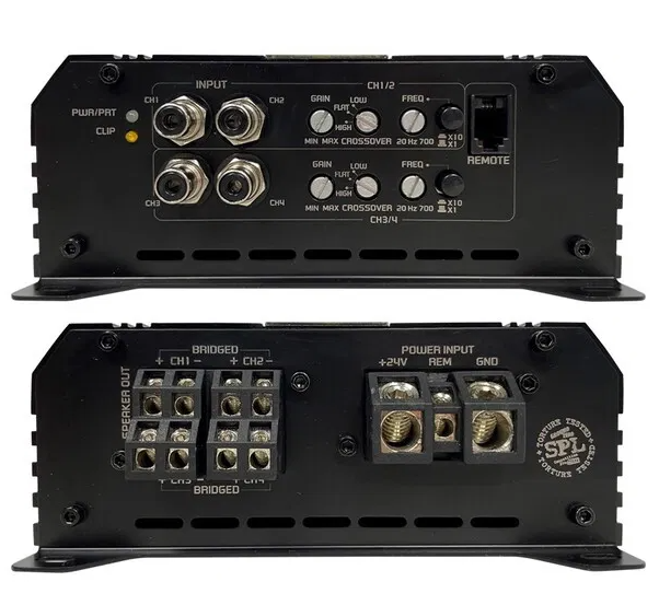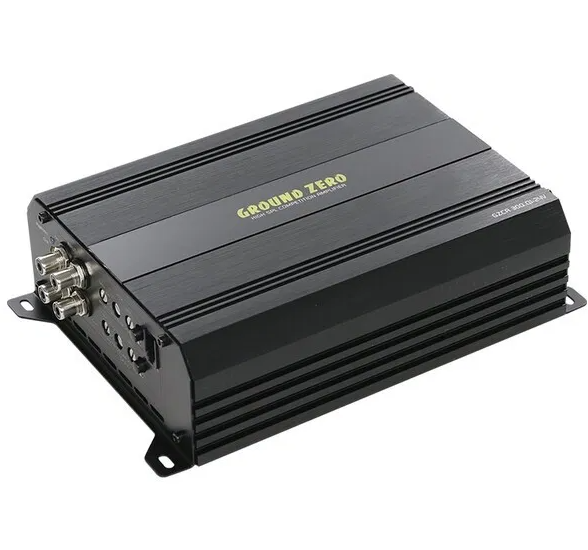 4-kanalig 1-ohm stabil fullregister SPL högeffektsförstärkare med klass D-krets och integrerad aktiv delningsfiltrering 24 V driftspänning SPL högeffektsförstärkare Klass D-teknik Variabel aktiv delningsfiltrering Fullregisterfrekvensrespons Stabiliserad högspänningsströmförsörjning Stora anslutningar Solid kylfläns med Ground Zero-text Särskilt kvalificerad för SPL- och SQL-applikationer