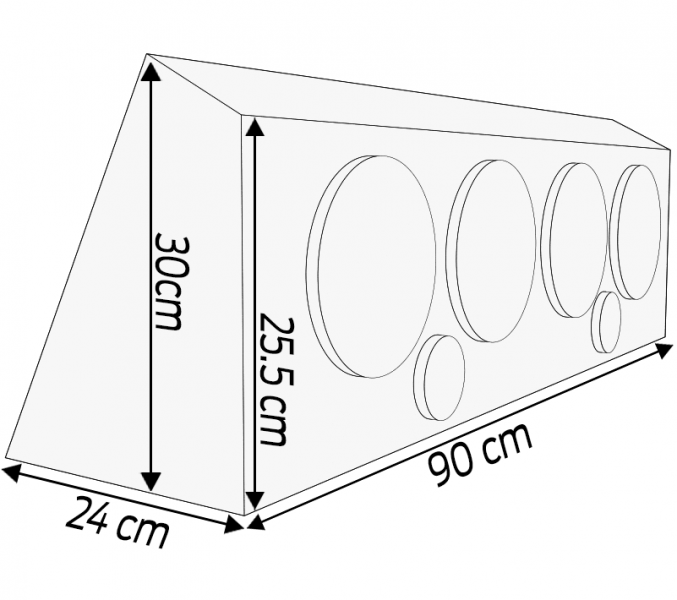 En låda för SPL kit med 4x6,5" Midbasar och 2st Horndiskanter.