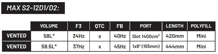 Grym kylning, trippelstackade 108oz-magneter och dubbla nomex-spindlar med mesh innebär en sak: otroligt mycket bas från en 12” bas. Storleken gör det enkelt att slänga in dubbla MAX S2-12D1 - perfekt för dig som vill förvandla bilen till en jordbävning på hjul. Hur ska lådan se ut? Detta är ett element som trivs bäst i en portad låda!