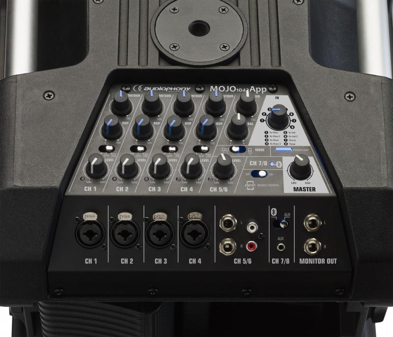 • IPAD app «MOJOcontrol» level control, Parametric EQ, Multi-effects, and Compressor per channel, Graphic output EQ, Master, Balance, SUB Level.