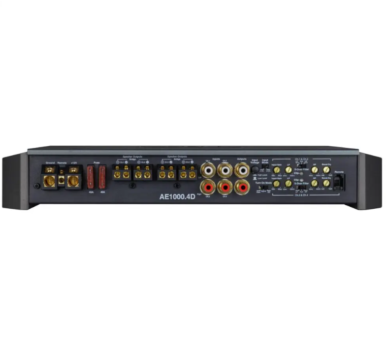 Reiss RS-AE1000.4D är ett kompakt men kapabelt 4-kanals slutsteg i klass D, perfekt för dig som söker tydlig, kraftfull återgivning med mångsidig konfiguration. Med upp till 250W RMS per kanal vid 2 ohm och 150W RMS vid 4 ohm, har du tillräcklig effekt för att driva både midbasar, diskanter och fullregisterhögtalare med precision och kontroll.