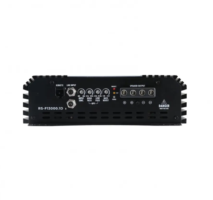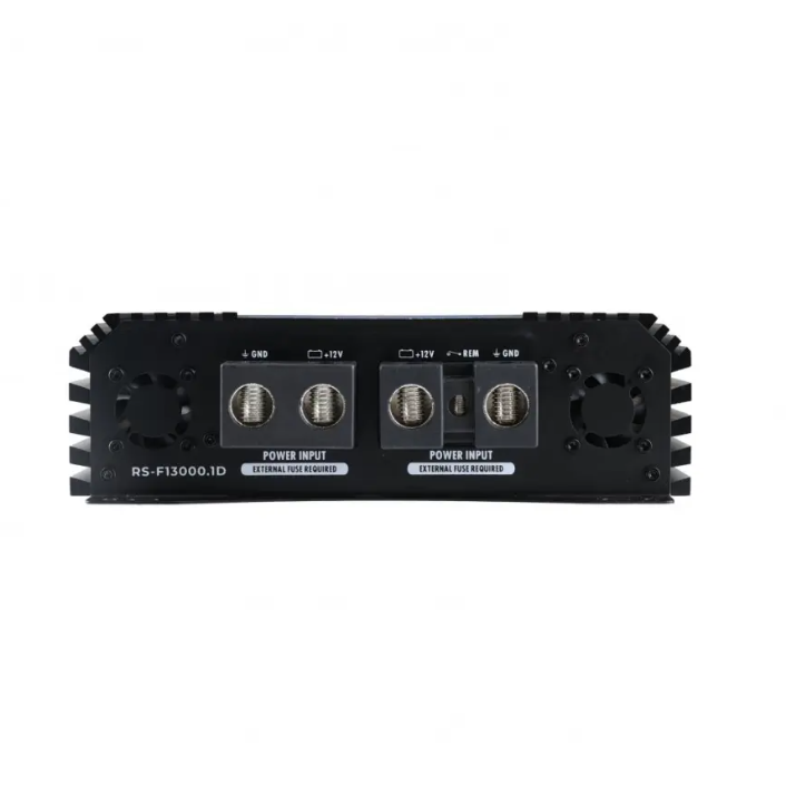 Reiss RS-F13000.1D är ett brutalt kraftfullt Klass D-slutsteg som levererar hela 13 000W RMS vid 1 ohm, 6 500W vid 2 ohm och 3 300W vid 4 ohm. Med en total harmonisk distorsion under 0,5% och ett signal/brusförhållande på 90 dB vid 4 ohm, 1W, garanteras ren och kontrollerad återgivning även vid extrema ljudnivåer. Slutsteget är utrustat med ett justerbart subsonic-filter från 10 till 100 Hz, vilket låter dig optimera basresponsen och skydda dina element, samt en Bass Boost-funktion på upp till 12 dB när du vill ha extra tryck. Det breda frekvensomfånget på 10 Hz–20 kHz ger både djupaste bas och klara högfrekventa detaljer, medan en flexibel gain range på 0,4–0,3 V gör det enkelt att matcha olika signalnivåer. RS-F13000.1D är byggt för att driva de mest krävande SPL-byggen och high-end bassystem, med en kombination av råstyrka, effektivitet och ljudkvalitet som få andra kan matcha.