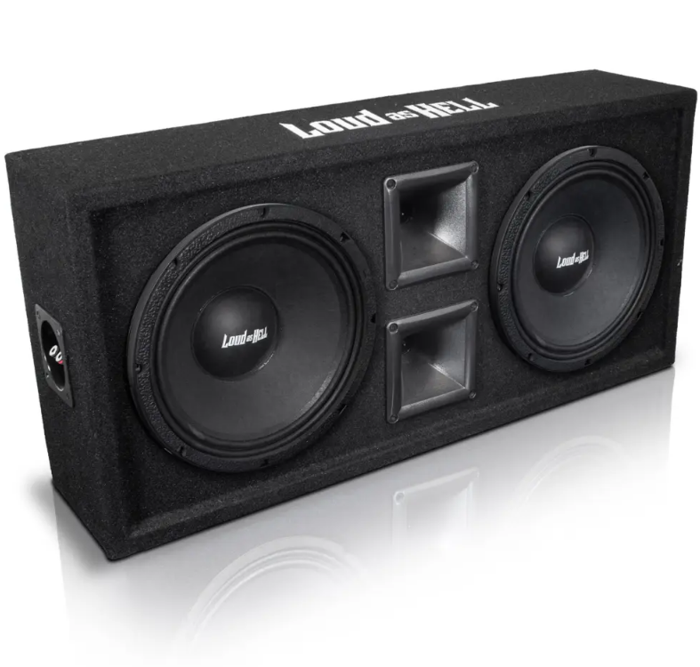 Loud as Hell TERROR 2x12" är plankan för dig som vill ha kompromisslös spelglädje, rejäl punch och rå ljudkaraktär. Med två 12-tums midbasar och dubbla horndiskanter levererar den både brutal kick och tydlig topp – perfekt för den som vill synas, höras och känna varje ton.