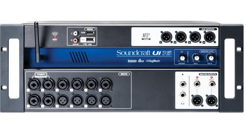 16-ingångars fjärrstyrd digitalmixer, 8 XLR combo mic/line, 4 mic/line, 2 Hi-Z in, 1 stereo RCA, 2-ch USB mediaspelare, 2 Aux ut, L-R, inbyggd WiFi.