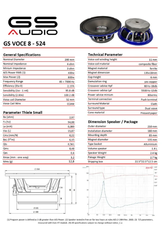 En riktigt kraftig 8" högtalare på 400Wrms från GS Audio's Pro serie! Säljs styckvis! Dessa har en spole på 2" för grymt hög effekttålighet samtidigt som de låter otroligt bra!